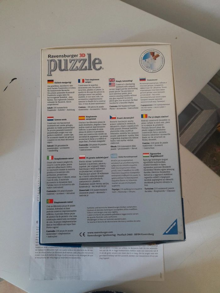 Puzzle 3d Big ben Complet avec boîte et notice 216 pièces Très bon état Sera expédié monté