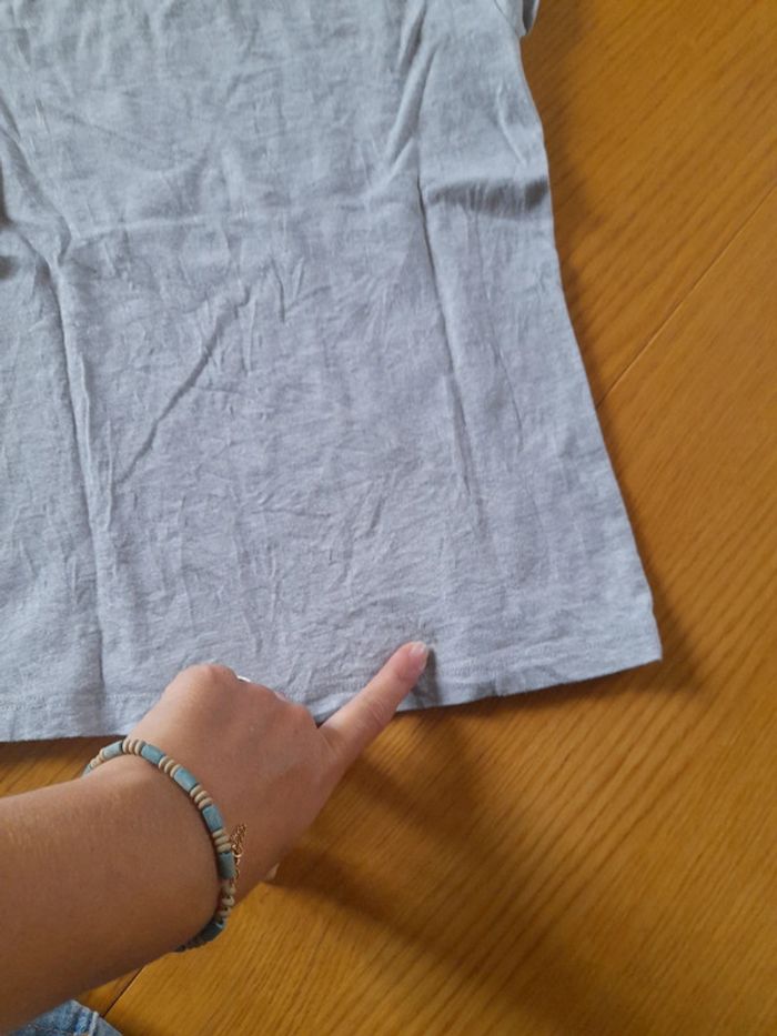 T-shirt manches courtes Couleur gris, rose avec paillettes Taille 8 ans Marque Hello Kitty Une petite tache en bas du dos de 1mm
