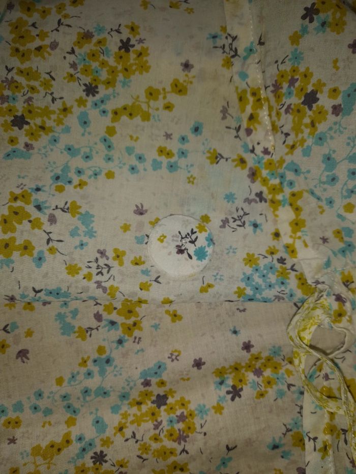 Robe très fine très légère Marque capitaine tortue Taille approximativement 8 ans (attention, il n'y a pas d'étiquette) Dimensions : Sous la poitrine 33cm Longueur du haut de la bretelle jusqu'au bas de la robe 66 cm Elle se retrousse sur les côtés grâce à des liens. Nœud dans le dos au bas des bretelles d'origine. Un bouton pression sur le devant,m de la robe avec 2 ronds de tissu derrière. Je ne sais pas à quoi cela sert. Pas de tache ni de trou. Elle est juste froissée