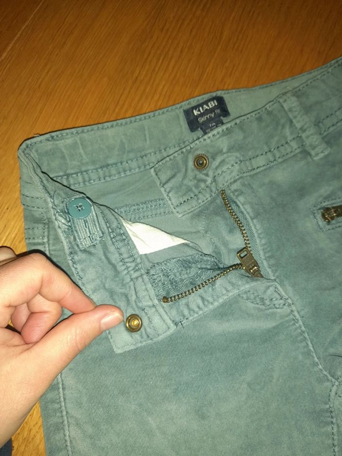Pantalon skinny fit Taille 7 ans Marque kiabi Couleur vert d'eau. Se rapproche de la 1ere photo Très bon état Bouton pression, taille ajustable par élastiques, 2 poches avec fermeture éclair