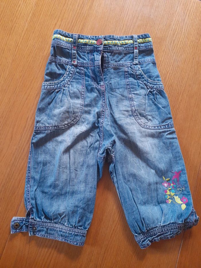 Sarrouel Jean fille Taille 7 ans 122cm Déjà porté mais bon état Ceinture ajustable par élastique Fermeture éclair ok