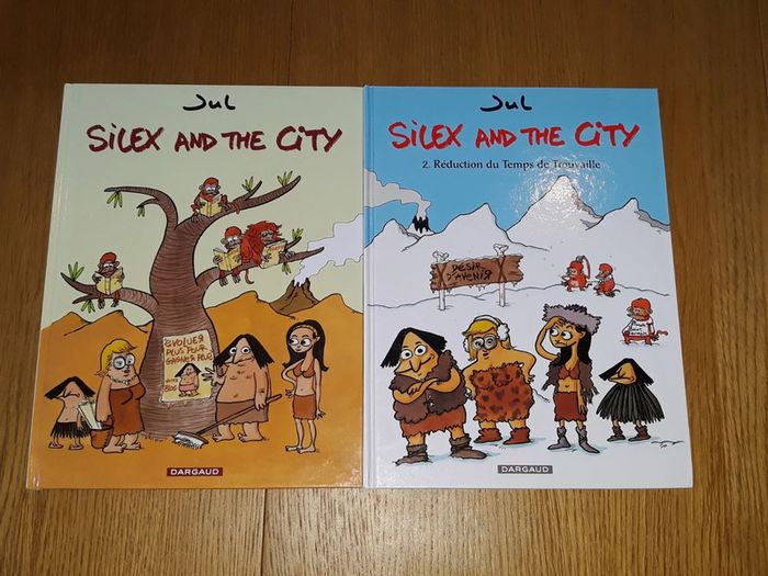 Lot de deux bandes dessinées silex and the city. Tome 1 et 2 Tres bon état sauf deux inscriptions dans le tome 1 et un angle râpé pour le tome 2 voir photo.