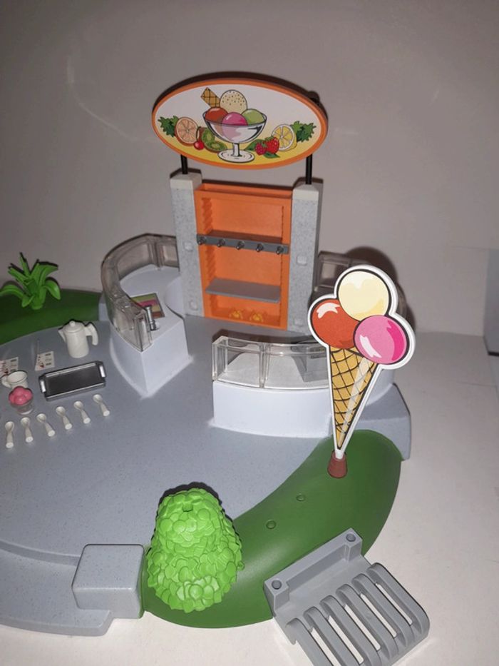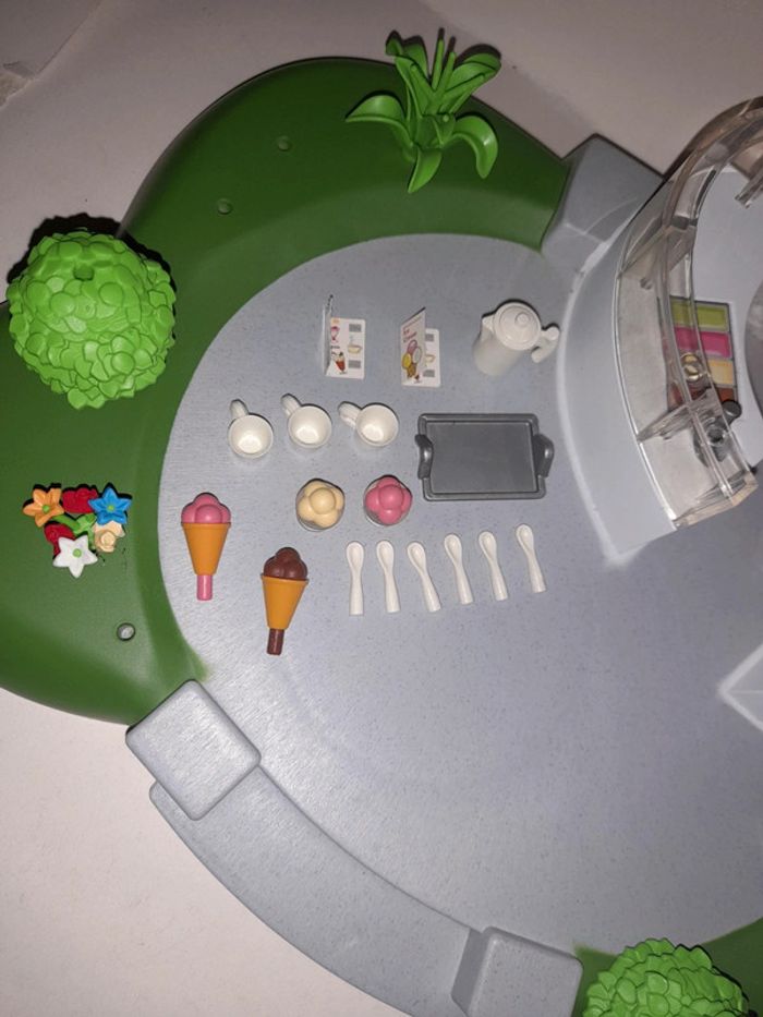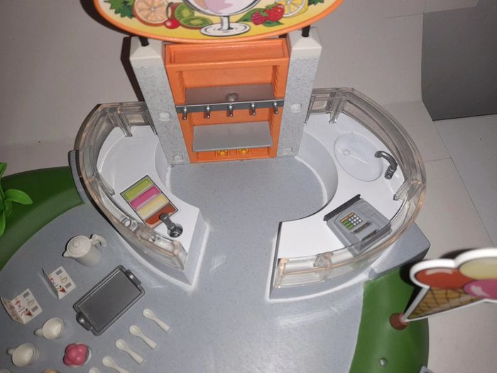 Vendu tel que sur la photo Pas de personnage 2 coupes de glace 2 cornets de glace 6 cuillères 3 tasses Une carafe 2 dépliants menu ice cream