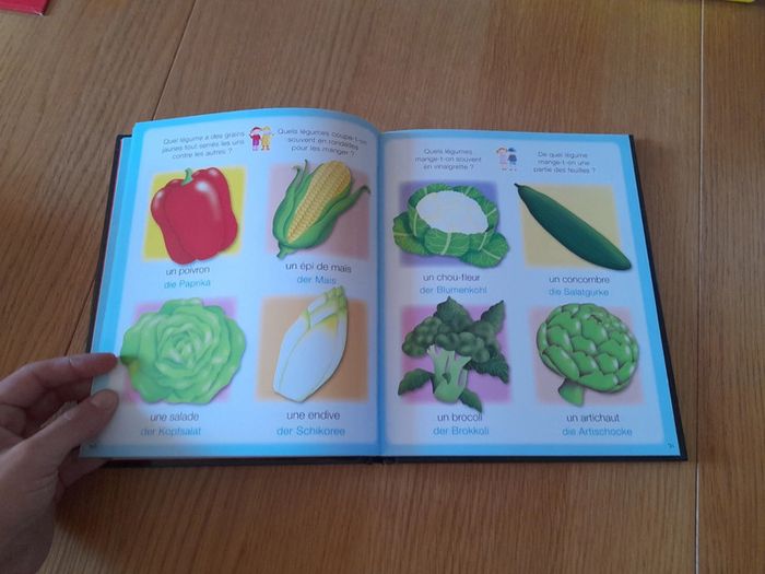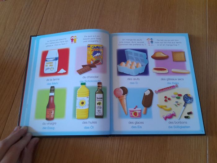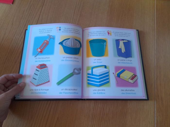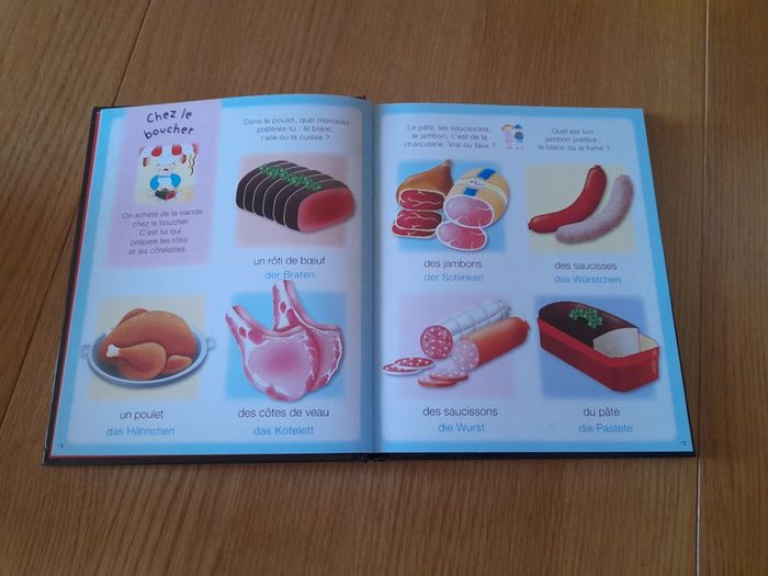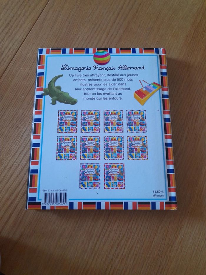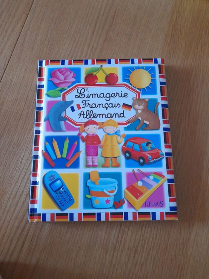 Livre de vocabulaire franco allemand avec plus de 500 mots. Idéal pour aborder les notions d'allemand avec les enfants. En très bon état proche du neuf.