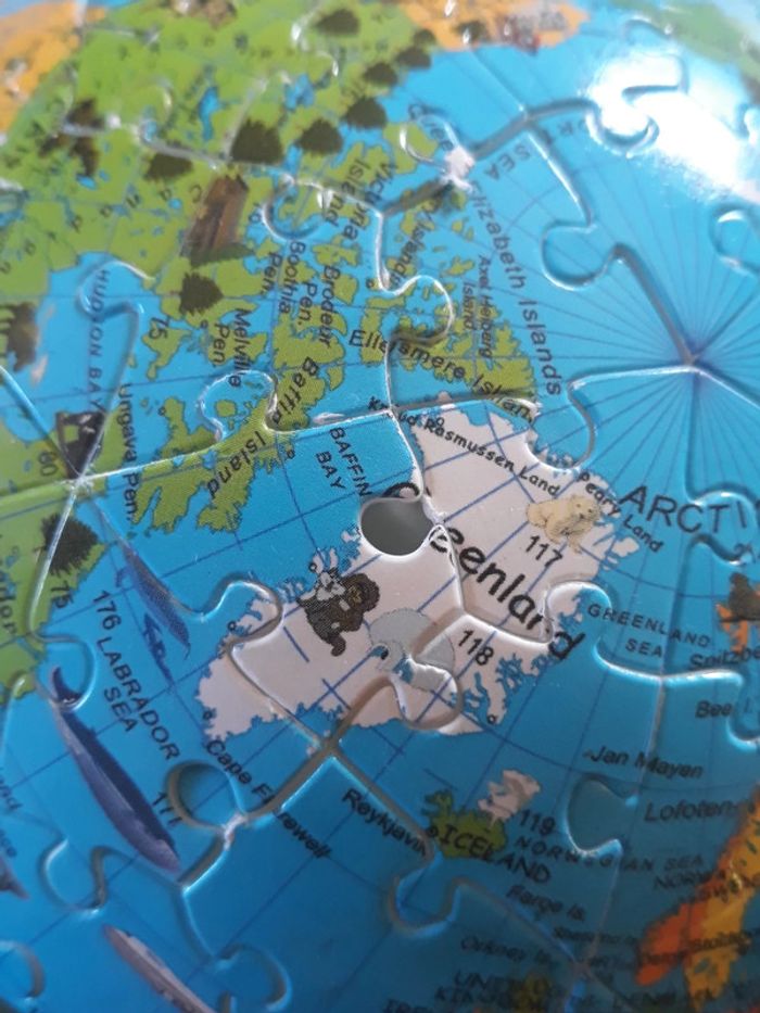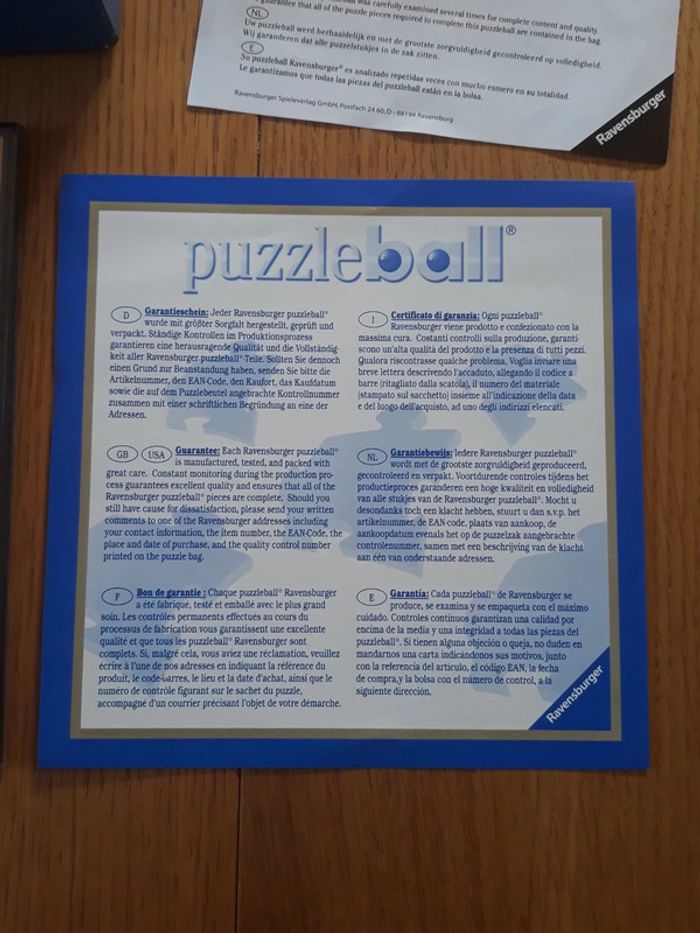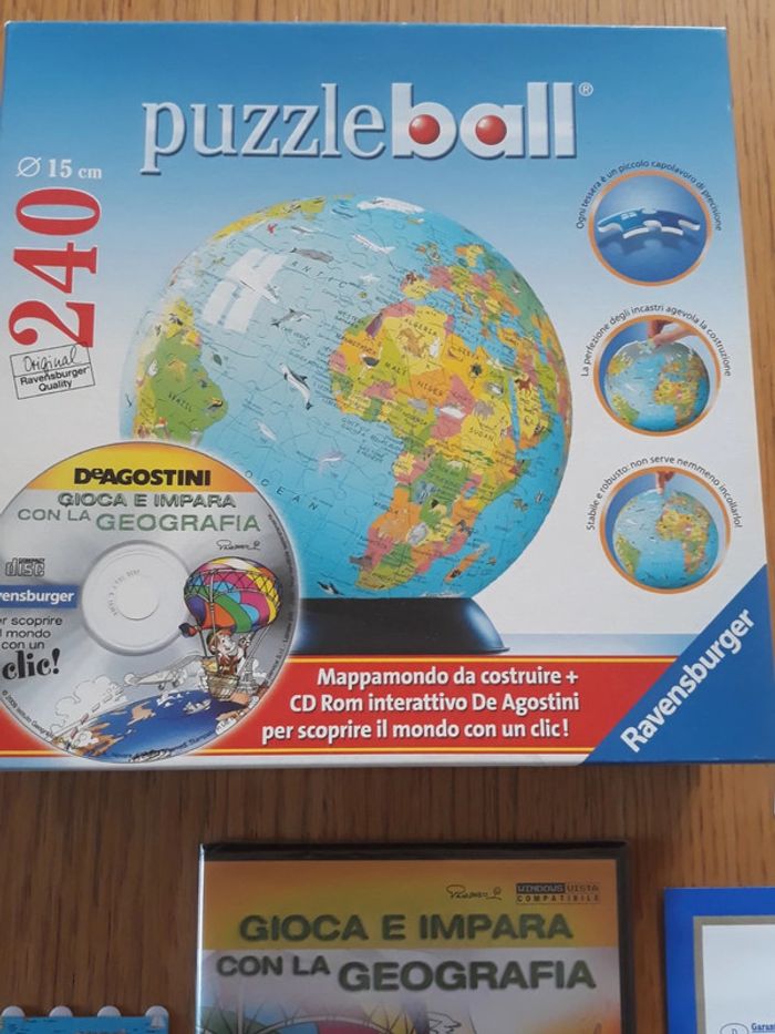 La planète terre en puzzleball En tres bon état hormis quelques petits défaut très légers en photo. La sphère sera livrée déjà montée. Inscription en anglais sur la sphère, les éléments de la boite sont en italien, dont le cd encore sous blister, je suppose qu'il y a une version française comprise.