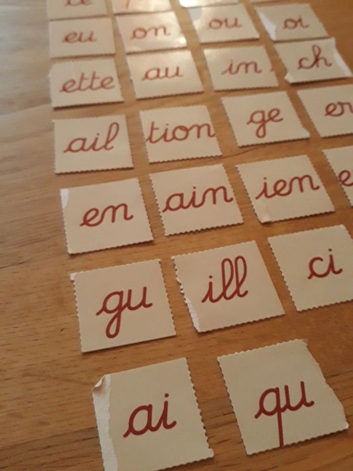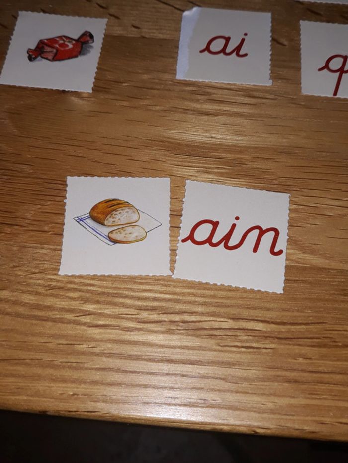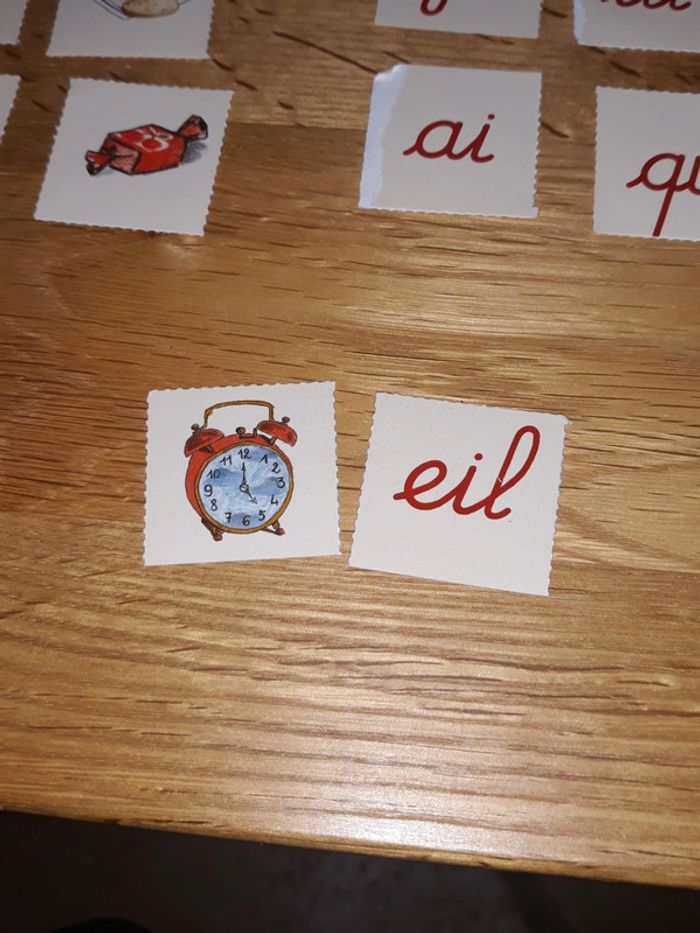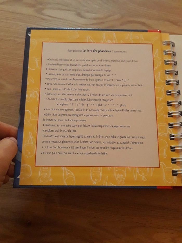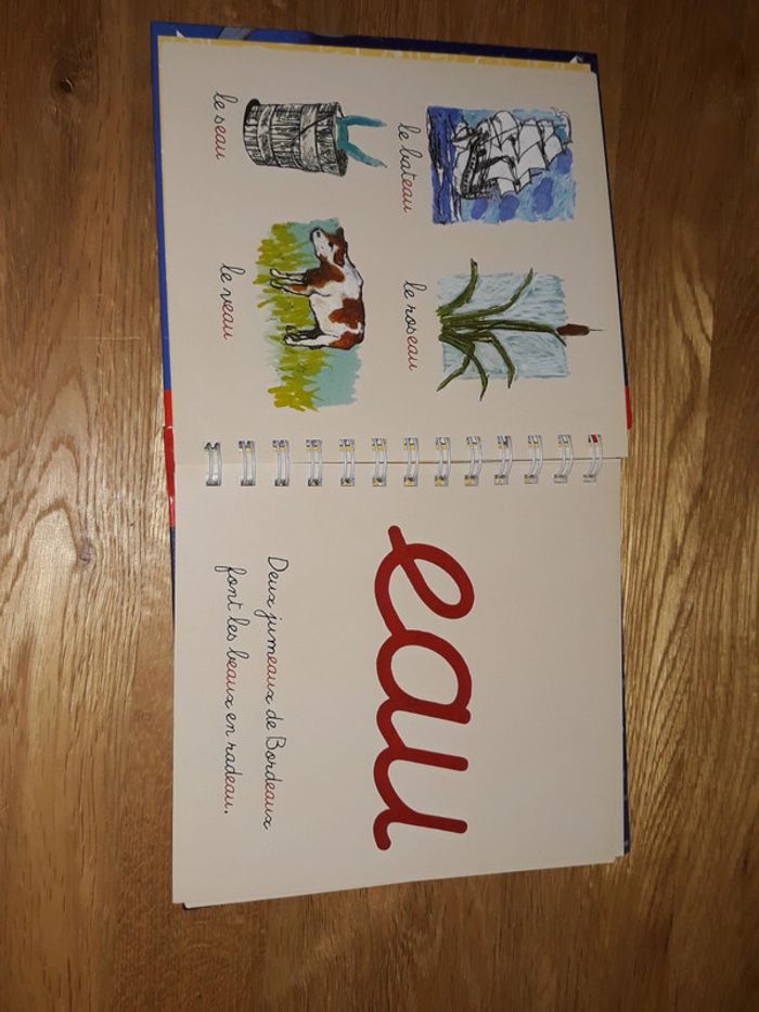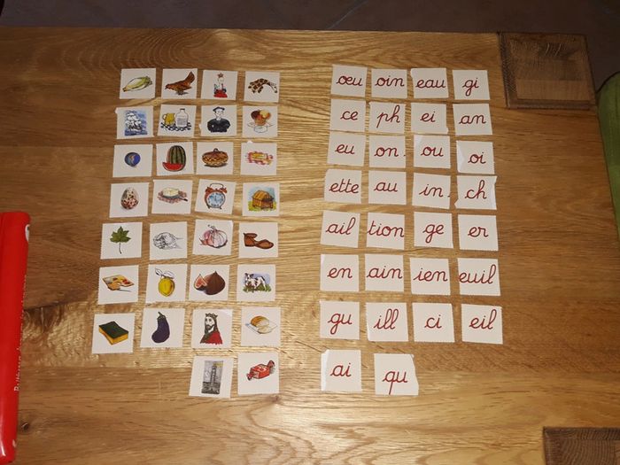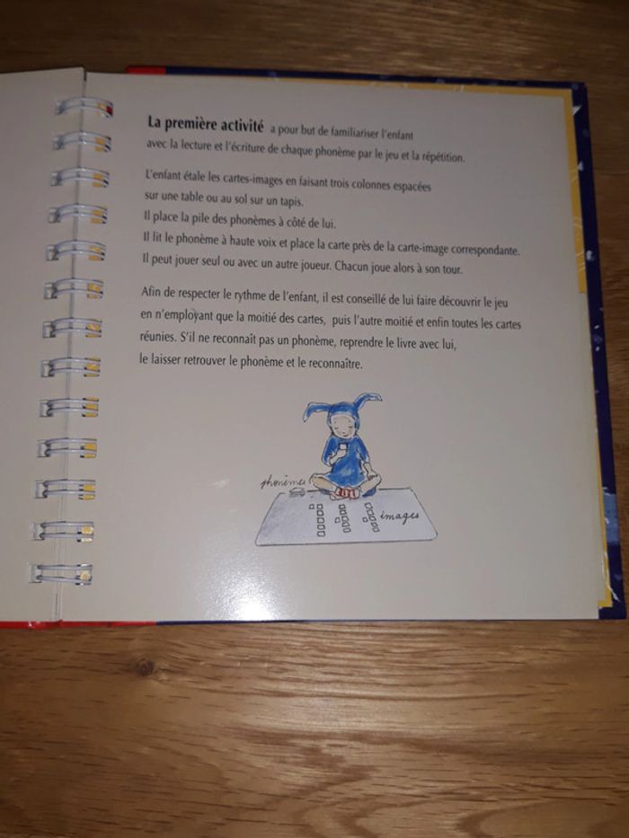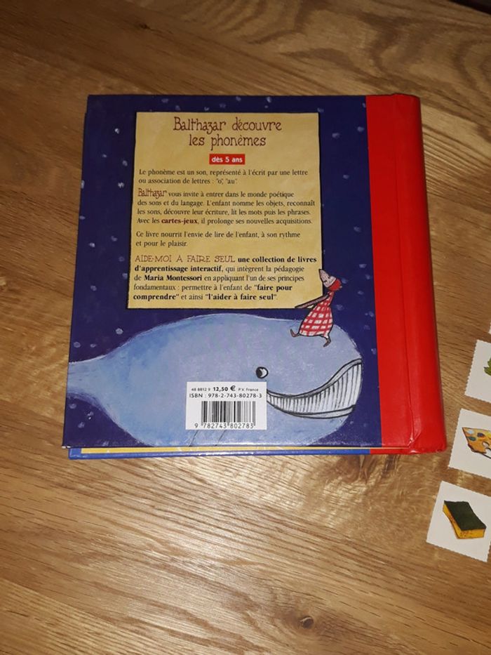 Dès 5 ans pour l'apprentissage de la lecture Pédagogie Montessori Livre en très bon état Seuls les petites cartes n'ont pas été séparées les unes des autres proprement.