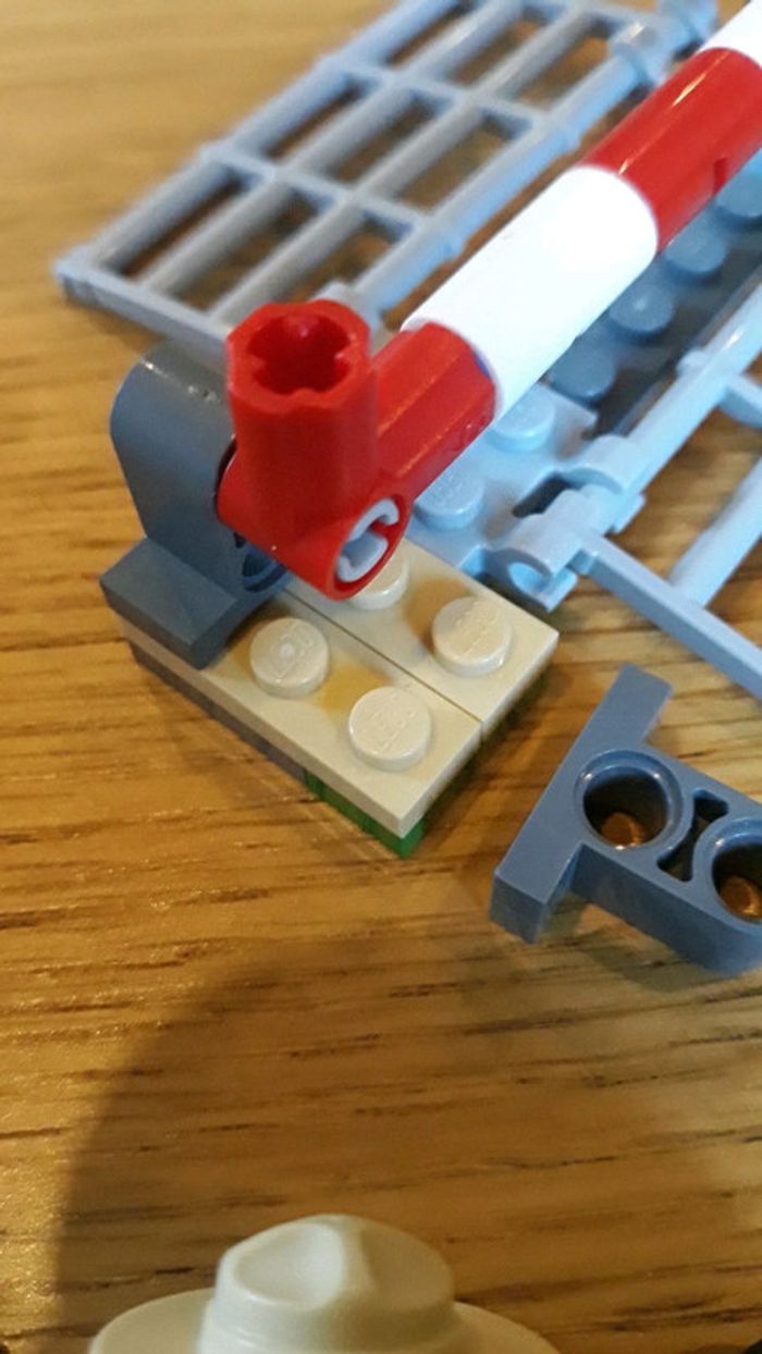 Tres bon état notice inclue mais sans boite d'origine Manque 2 petites pièces Une grille noire à l'arrière du véhicule Une jonction entre les 2 piliers de la barrière (remplacer par une autre pièce pour assurer le fonctionnement de la barriere). Un petit bout de pièce est cassée mais ne gêne pas non plus