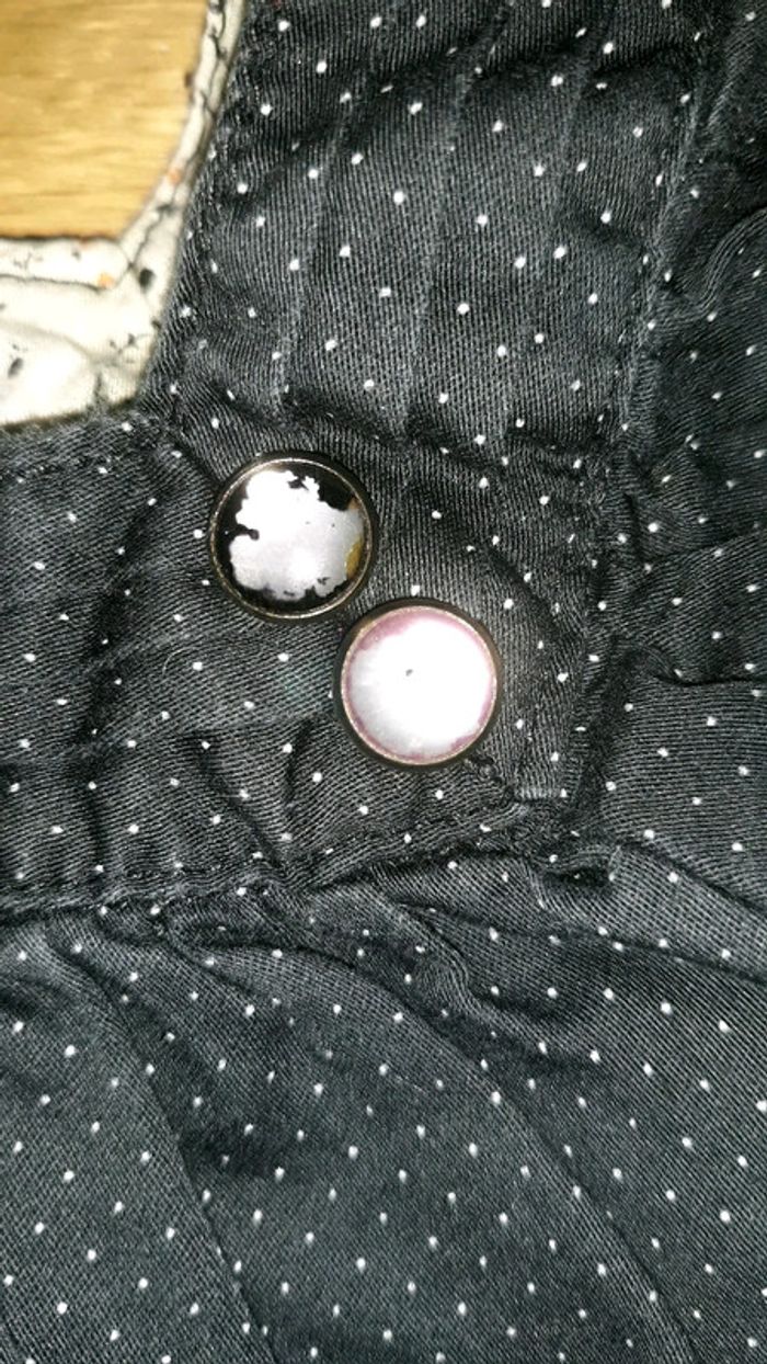 Noire en tres bon état Surpiqures jaunes et blanches Décors en surpiqûres également 2 petits boutons en haut à gauche qui présentent un petit défaut Idéal avec un collant et un haut lanche longue