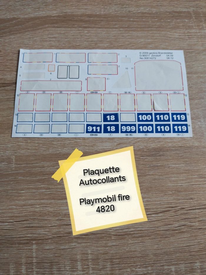 Plaquette autocollant stickers Playmobil fire 4820 Playmobil officiel
