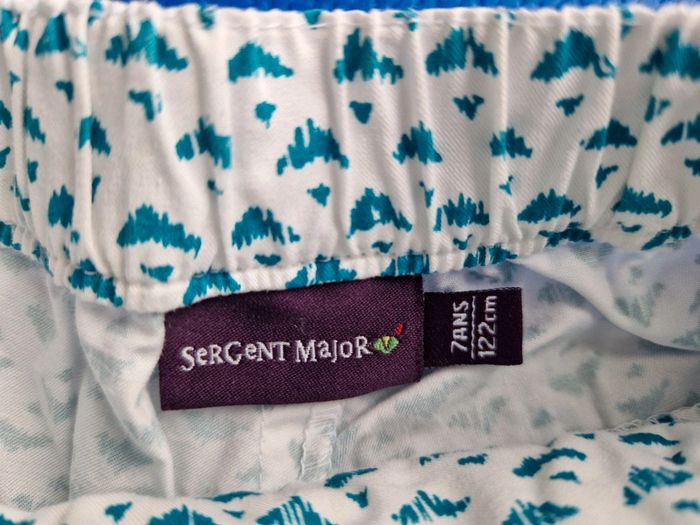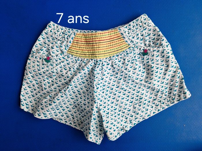 Short blanc avec motif vert turquoise et broderies à la ceinture. Très bon état.