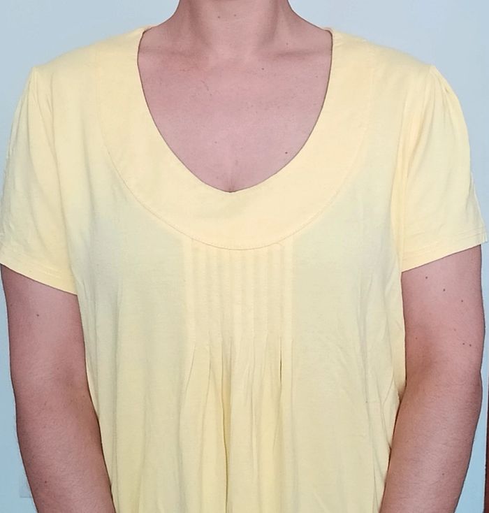 📣 Pour un lot, me contacter 😊🌸 -10% pour deux articles achetés -20% pour trois et + 🥰 #poupoupidouxl 🫶🫶🫶🫶🫶🫶🫶 T-shirt fluide uni jaune pastel, manches courtes et décolleté en V féminin, pinces chic devant, facile a porter et a assortir, taille Xl #tshirt42 #tshirtjaunepastel #haut42 #hautetexl #tshirtjaunexl #tshirtjaune42 #hautpastel42 #hautcasualchic42 #hautete42 #tshirtfluide42