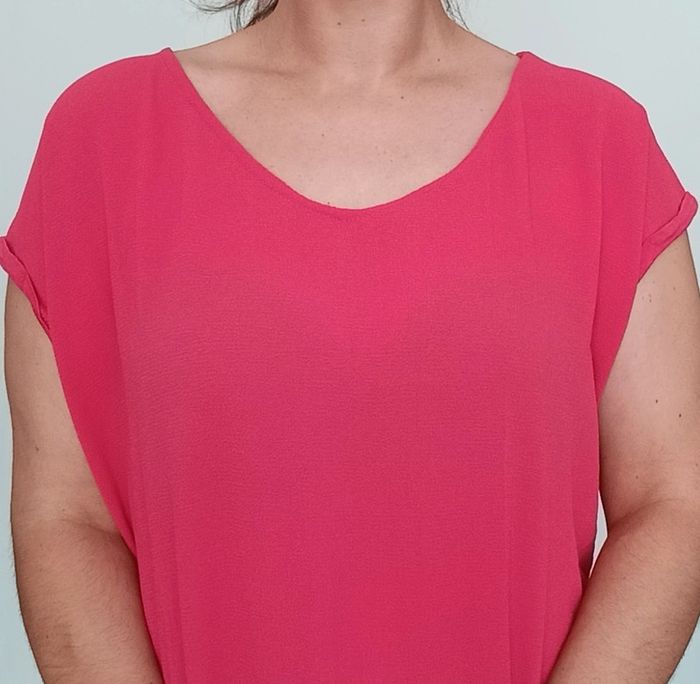 Haut fluide crêpe uni framboise taille 46 - photo numéro 2