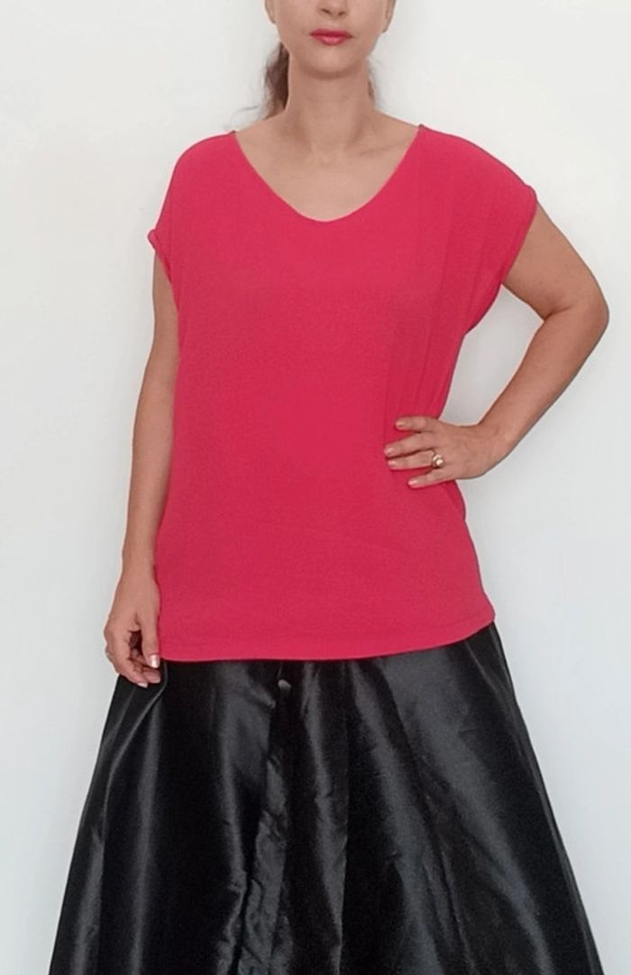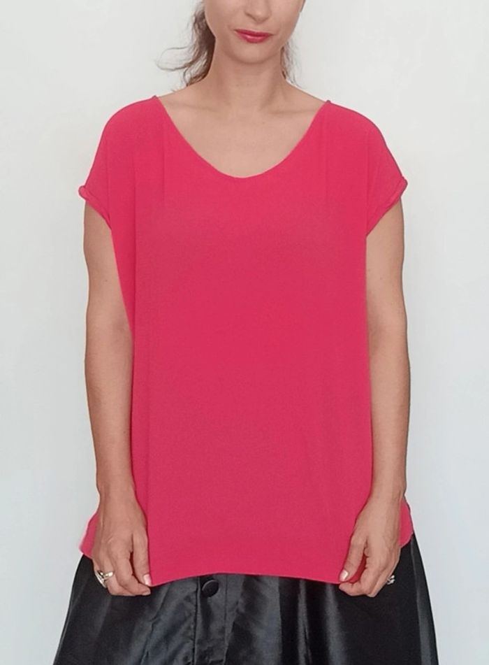 Haut fluide crêpe uni framboise taille 46 - photo numéro 1