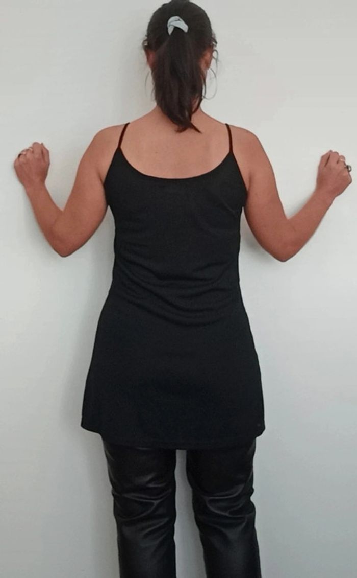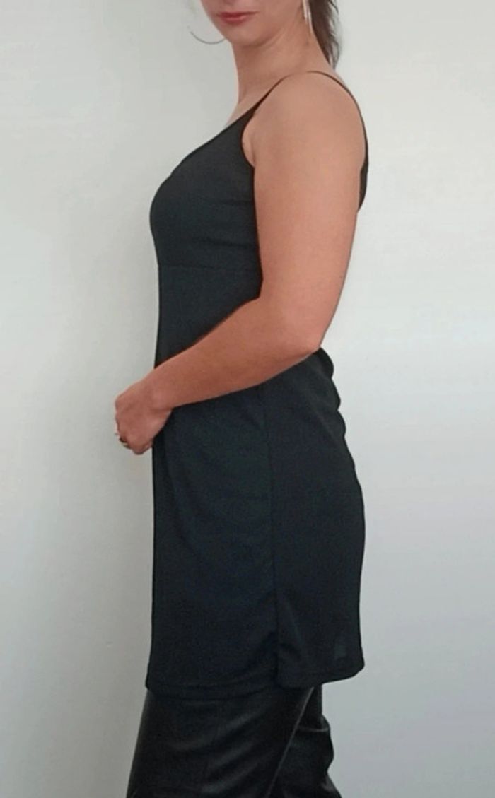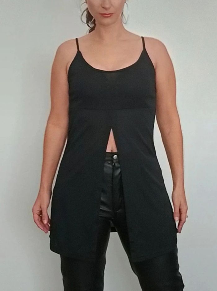 📣 Pour un lot, me contacter 😊🌸 -10% pour deux articles achetés -20% pour trois et + 🥰 #poupoupidoutu 🫶🫶🫶🫶🫶🫶🫶 Tunique unie noire légèrement transparente, fendue devant, décolleté arrondi et fines bretelles, basique, chic et sexy #tunique #tuniquenoire #tuniquefendue #toplong #topouvert #tuniquenoire #basic #tuniquesexy