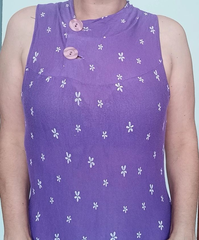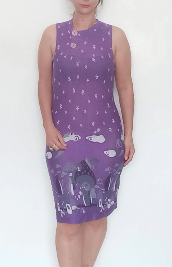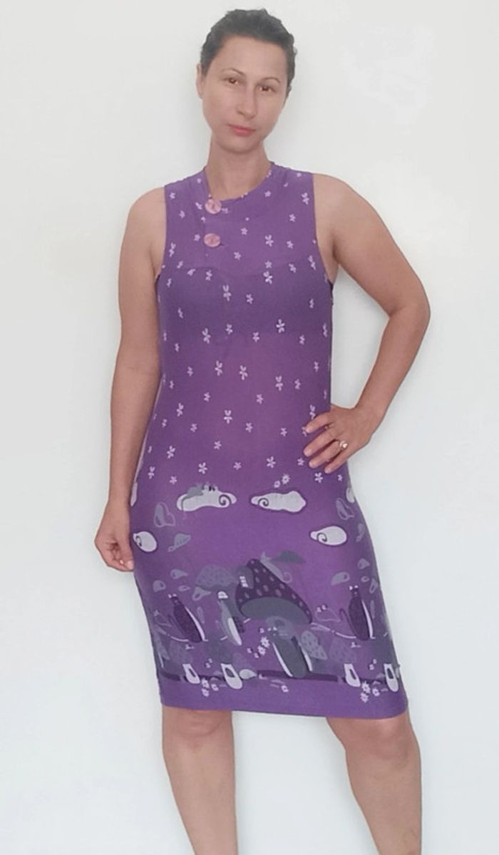 📣 Pour un lot, me contacter 😊🌸 -10% pour deux articles achetés -20% pour trois et + 🥰 #poupoupidoutu 🫶🫶🫶🫶🫶🫶🫶🫶 Robe d été, sans manche, longueur midi, moulante extensible, casual, confortable et féminine, tons violets et blancs et motif psychédéliques, champignons et étoiles, taille unique jusqu au 40 #robemidi #robeete #robemoulante #robepsychedelique #robepsychédéliquevintage #robecasual #robeviolette #robefeminine #robeoriginale