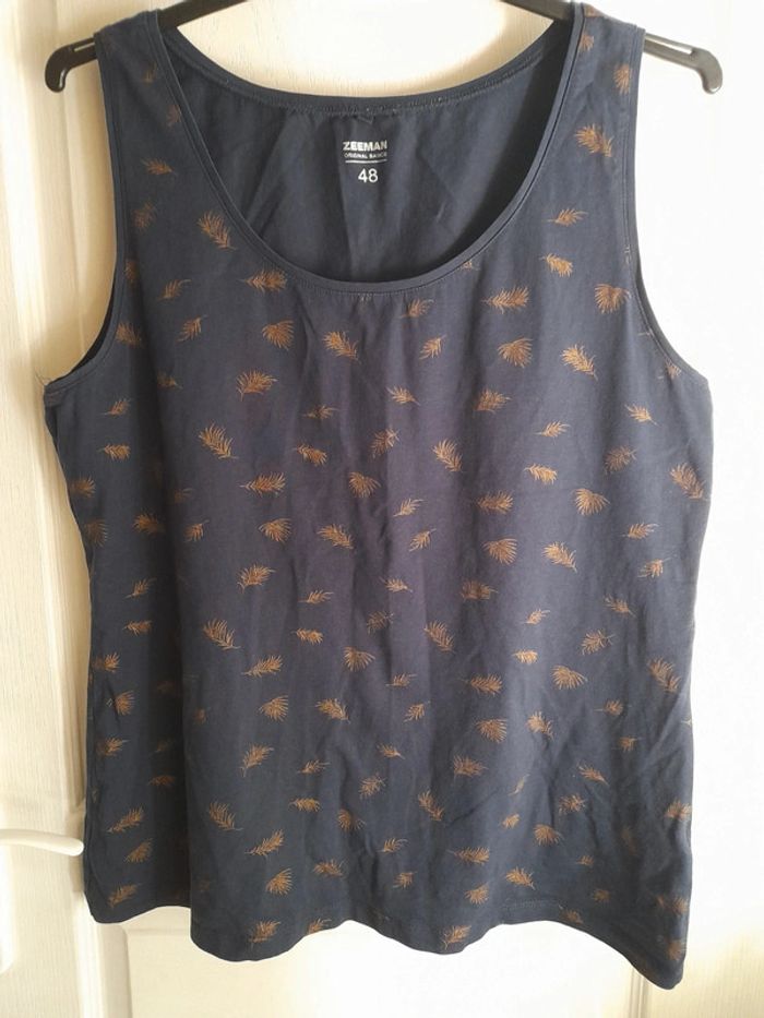 Débardeur bleu marine Feuilles dorées Taille 48 Très bon état #rachel62500femme4648