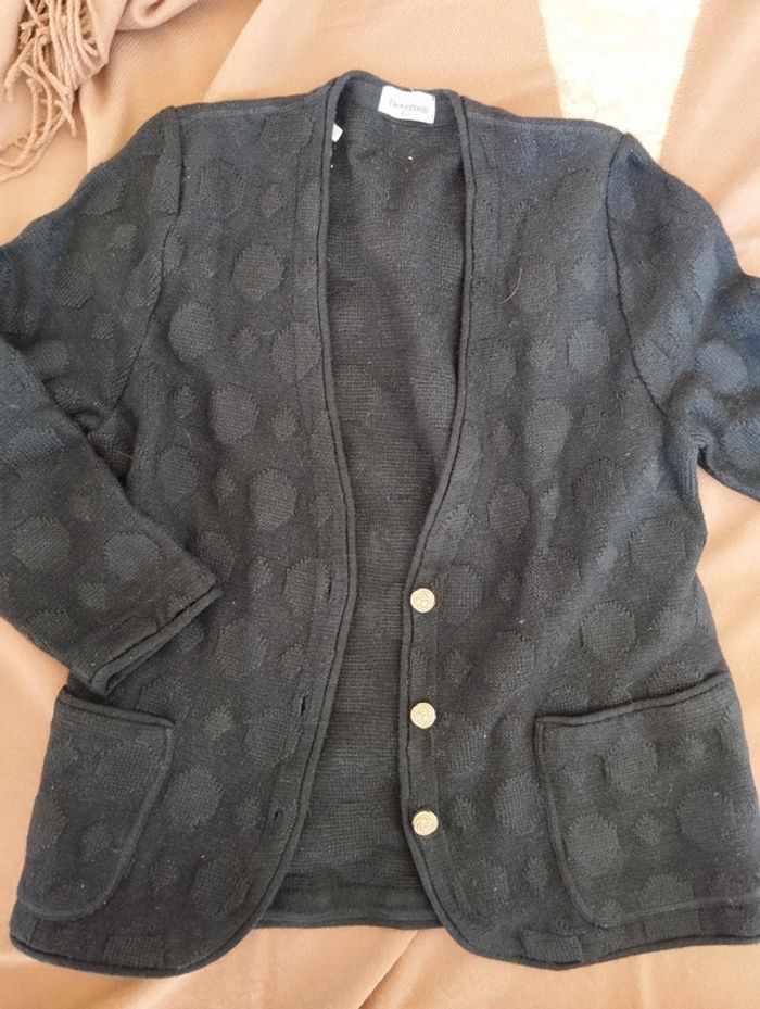 Veste de blaser motif rond Couleur noir Mélange de laine et acrylique Peu portée Attention noté 40 mais correspond à un 38 #Femme38etoile67100