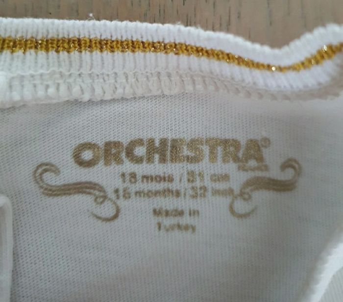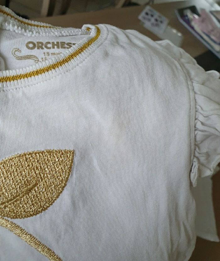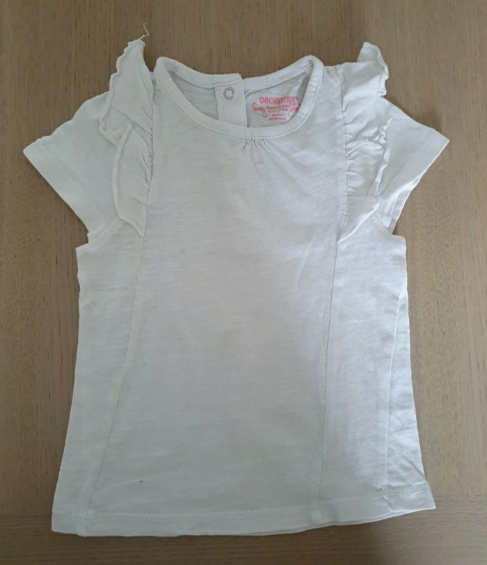 A vendre lot de 2 tee shirt, taille 18 mois, marque Orchestra. En bon état : l'un a une petite tâche et l'autre un petit accroc (voir photos). N'hésitez pas à jeter un coup d'œil sur mon dressing (d'autres vêtements en vente). Une réduction dès 2 articles achetés !