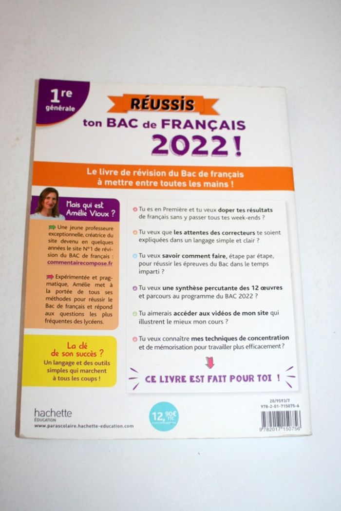 Réussir ton Bac de Français 2022 de Amélie Vioux, jeune professeure, 255 pages,valeur d'achat 12.90e, 560g - Le Nouveau Bac Français comment ça se passe? - Les 12 œuvres et parcours du Bac 2022 - Tous les conseils pour le Commentaire, la Dissertation, l'oral du bac + Comment gérer ton stress!