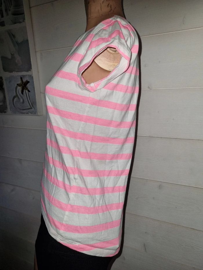 Parfait état. Style marinière rose et blanc. N'hésitez pas à me poser vos questions et à fouiller dans mon dressing pour acheter en lot et profiter des réductions. #louloulipop30 #louloulipop32 #louloulipop12ans #louloulipop152 #louloulipophauts