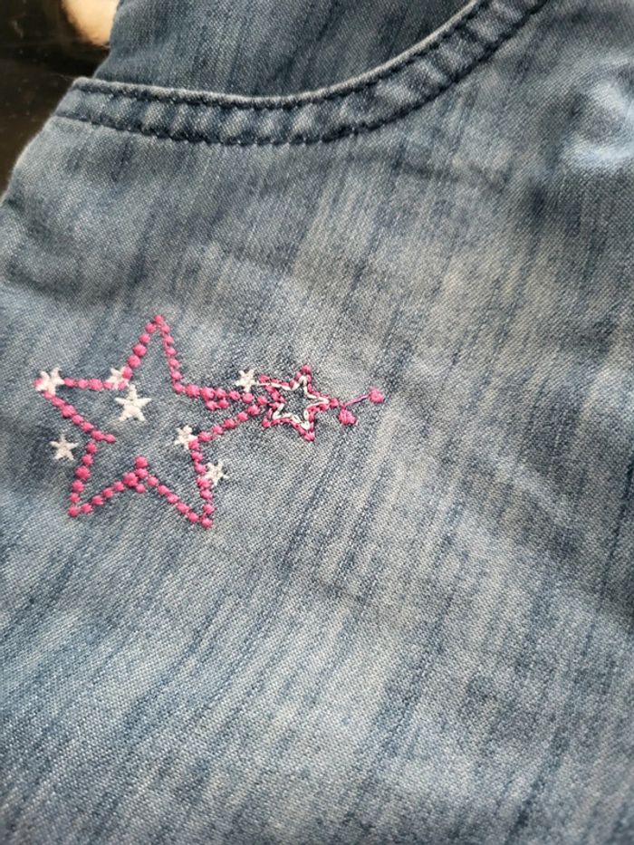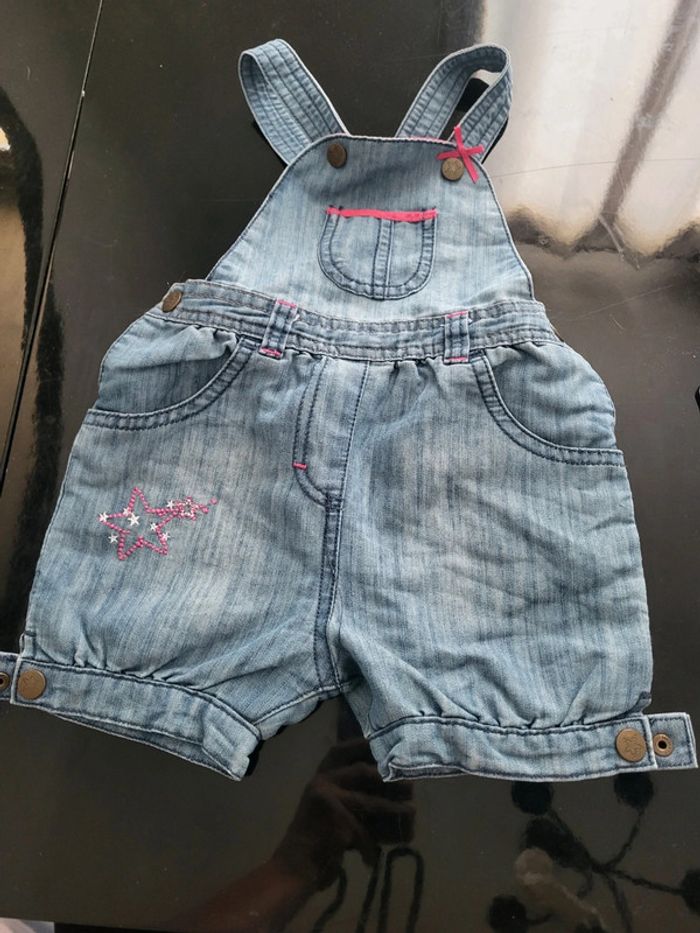 Combi short jean avec petit noeud rose et etoile brodé rose pression au niveau des cuisses