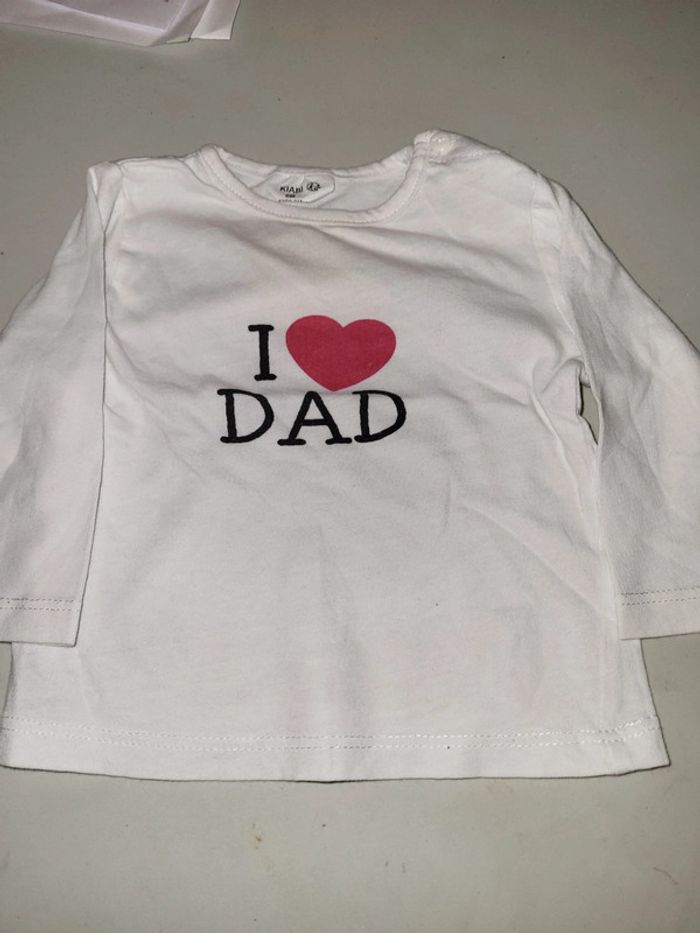 Lot comprenant 1 haut bleu marine "je suis a croquer" 1 haut blanc "i love dad"