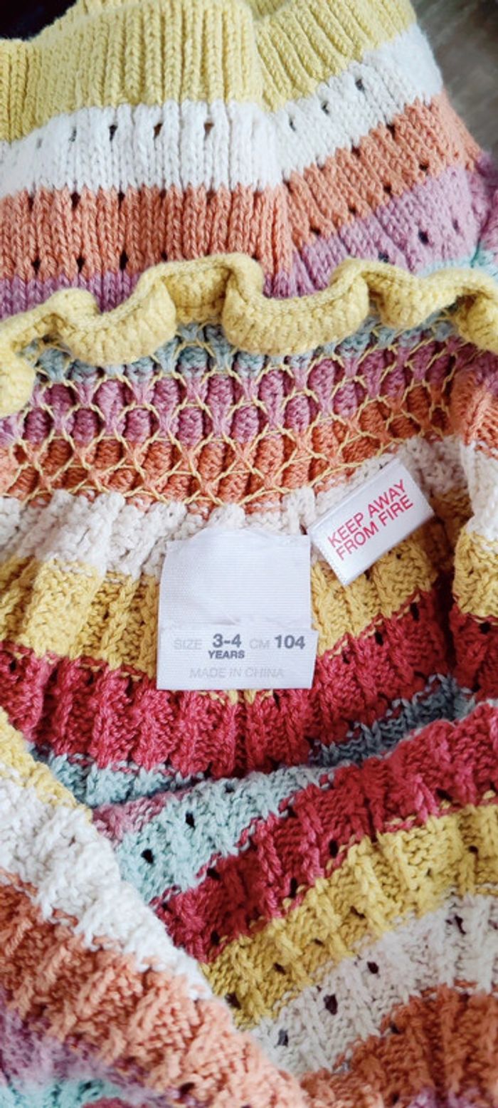 Jamais portée Étiquette découpée 3-4 ans 104 cm Bouton au cou Très élastique Grosse maille, on voit à travers