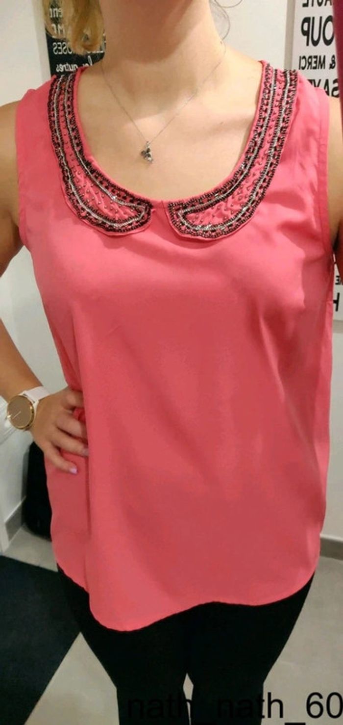 Chemise rose col perlé T 38 Convient 40 sans soucis