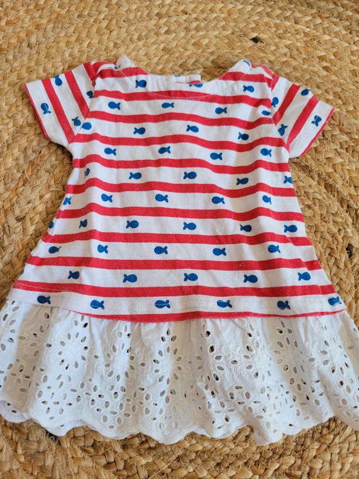 Robe rayée avec des petits poissons Broderie anglaise sur le bas Taille 6 mois