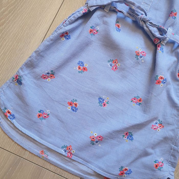 Robe bleu à rayures blanche et fleurs. Manche ajustable en manche courte grâce à bouton Fille 6 ans. Marque H&M En excellent état comme neuf Il y a plein d autres articles dans cette taille dans mon dressing  🤗 #lunaclara60fille6ans