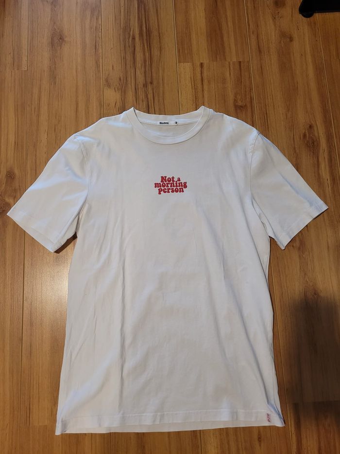 Tee shirt blanc marque Bizzbee taille M écriture rouge sur poitrine Not a morning person manche courte col rond