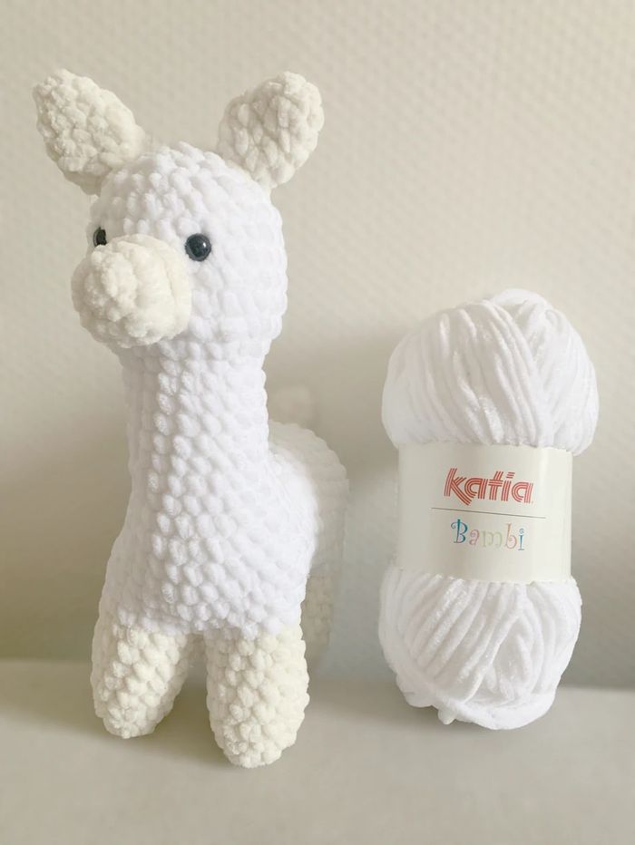 🌼 Alpaga très doux tricoté au crochet . Réalisé avec la laine Katia Bambi de couleur blanche et écrue. Dimension: Hauteur 29 cm Longueur 16 cm Ouate de rembourrage certifié Oéko-tex Lavable à 30 degrés, ne pas utiliser le sèche linge.