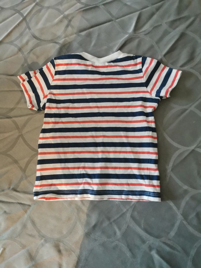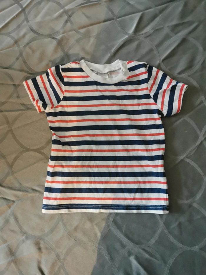 Manche courte en taille 9 mois de couleur blanche à rayures bleu et rouge 01/23