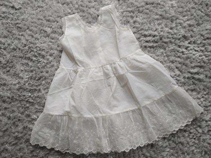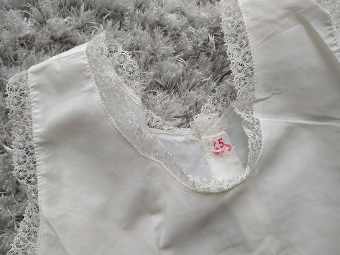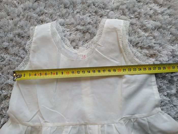 Dessous de robe Blanc cassé Taille estimée 2 ans Largeur poitrine 27 cm Longueur totale 47 cm Vintage