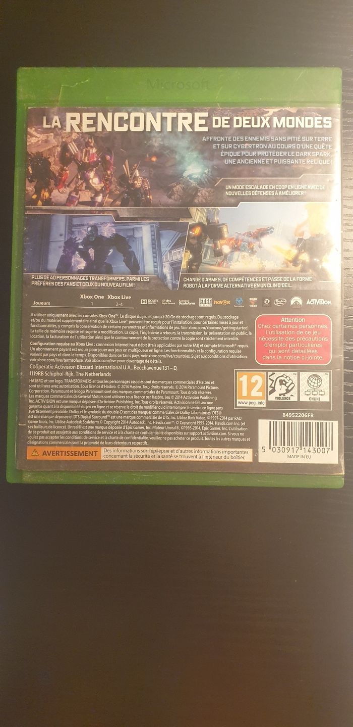 Jeux xbox one Transformer the dark spark