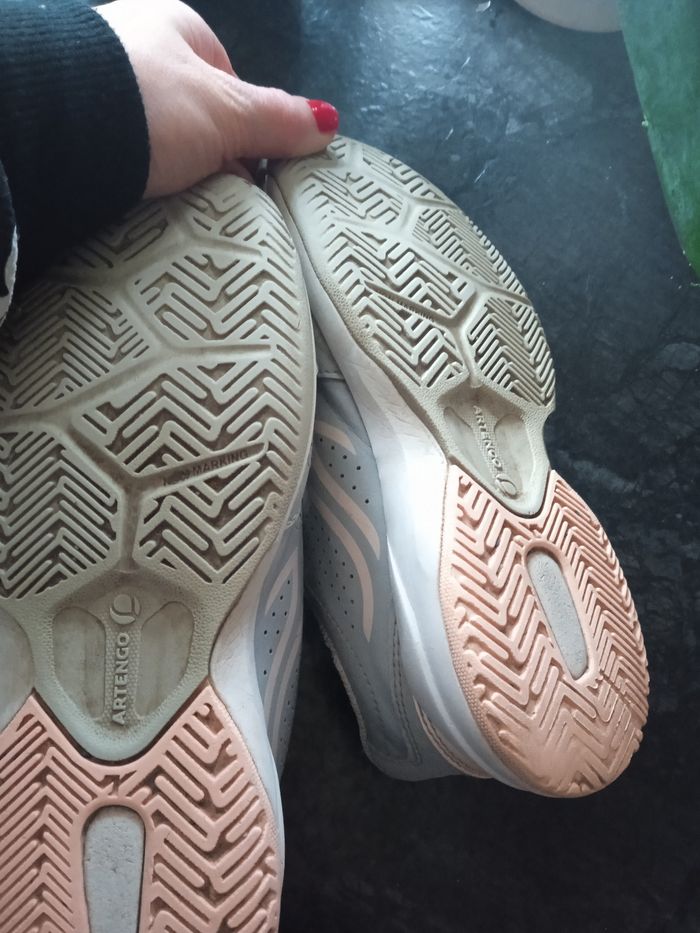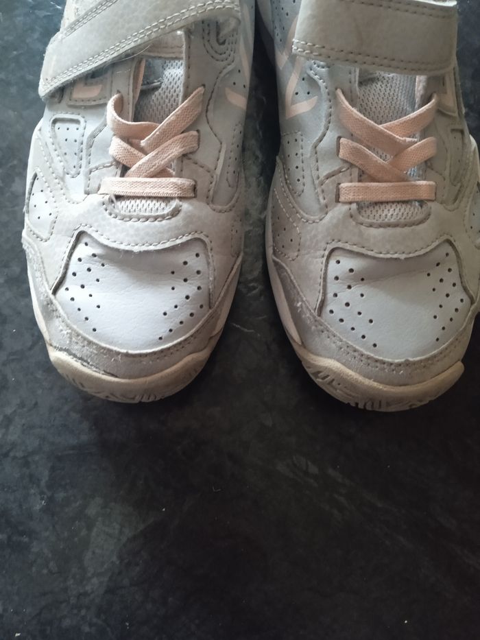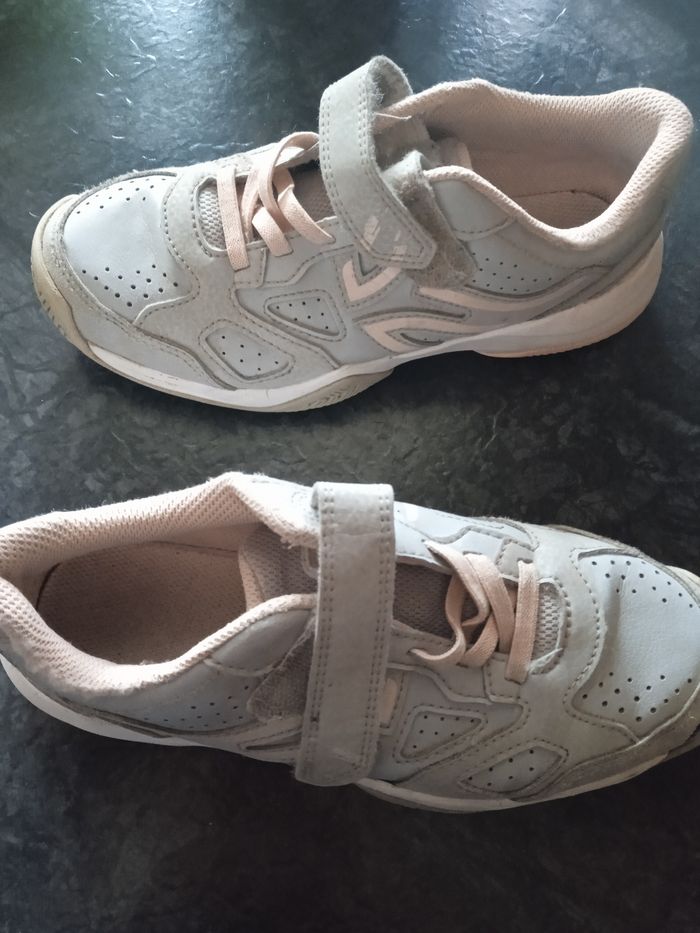 Basket grise élastique rose fermeture à scratch. Taille 34. De chez Decathlon marque Artengo. Un peu abîmé sur l'une des baskets voir photos. #fille10ansnade3033 #chaussonschaussuresnade3033