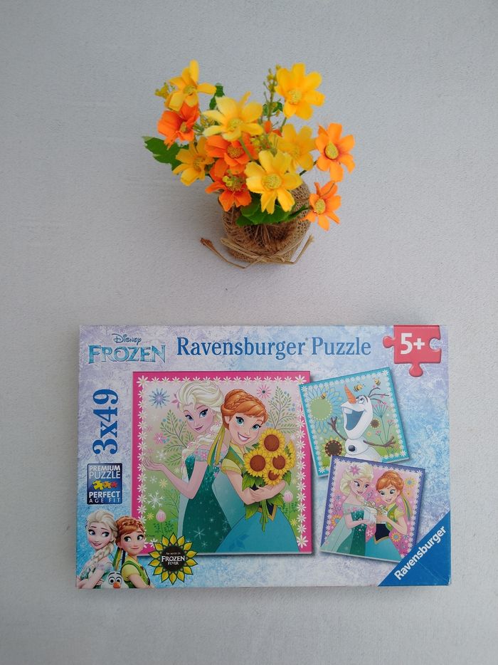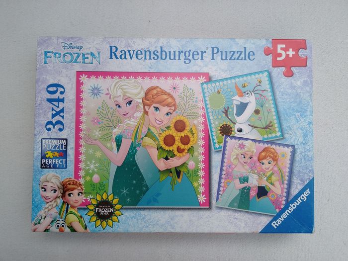 Puzzle Disney, Frozen, La Reine des neiges Marque Ravensburger À partir de 5 ans • 3 puzzles de 49 pièces • Poster • Une pièce abîmée Complet En très bon état #evelyne_jeux