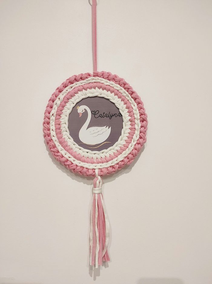 Fait en tissu recyclé coton déco personnalisable couleur et dessin crochetée fond bois 23 cm environ