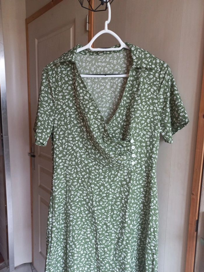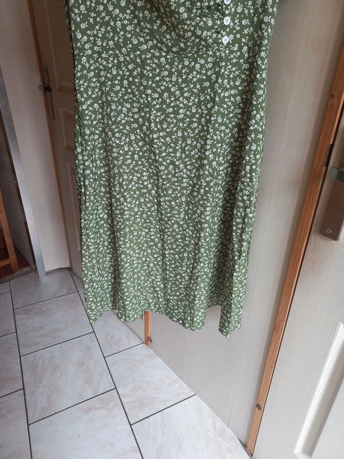 Robe verte imprimée fleurs Mi longue Taille L