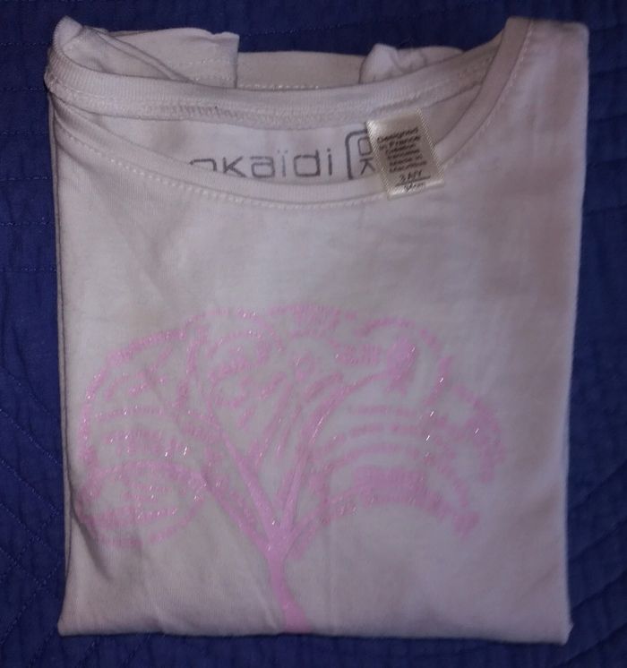 Porté quelques fois Taille 3 ans Blanc avec dessin arbre rose pailleté #estele31vêtementfille3ans