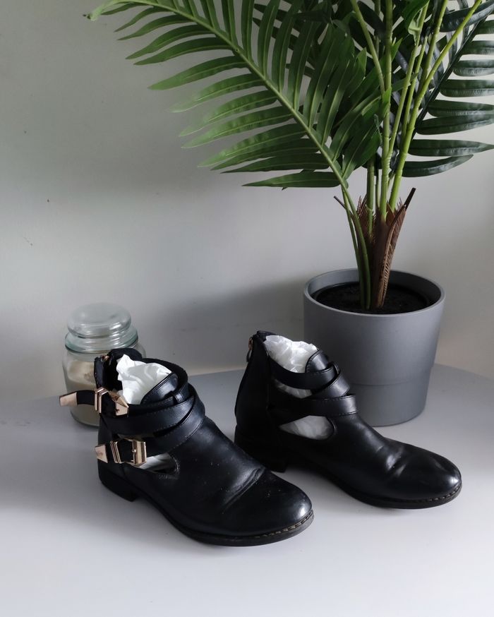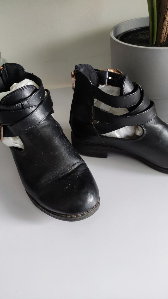 Boots en cuir Pointure 37 Zip a l'arrière Mis plusieurs fois Abîmée voir dernière photo
