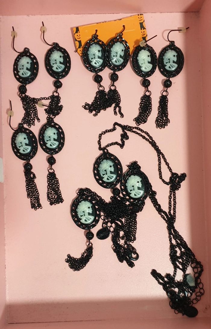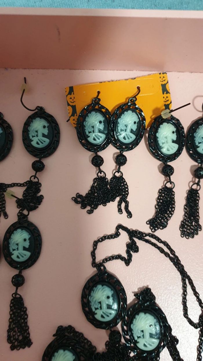 Lot de 4 paires de boucles d'oreilles et 4 colliers assortis identiques. Neuf jamais porté