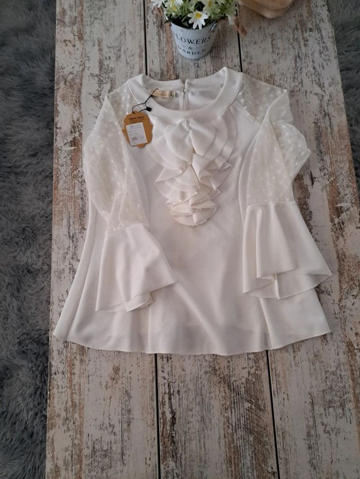 Haut col volant et manches dentelles évasée - photo numéro 1