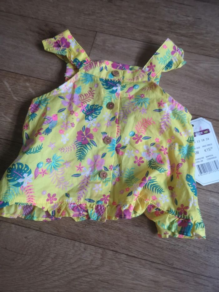 Petit hauts jaune fleuri couleur s très estivales à brettelles 6 mois neuf avec étiquette de chez Sargent Major pour être la plus belle en vaccances cet été /🌞🌊 . Prix vendu en magasin : 16 euro, possibilité de le prendre en lot à 10 euros avec un autre haut du même style de la même marque (voir dressing) Possibilitée de faire un lot prix réduit avec d'autres articles de la marque jacadi neufs voir dressing.