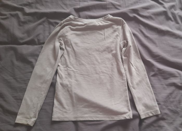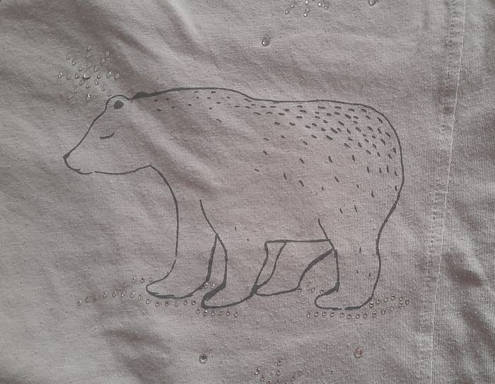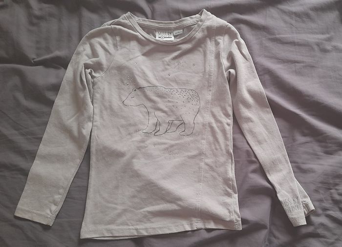 T-shirt manches longues col rond Motif ours et strass Gris clair