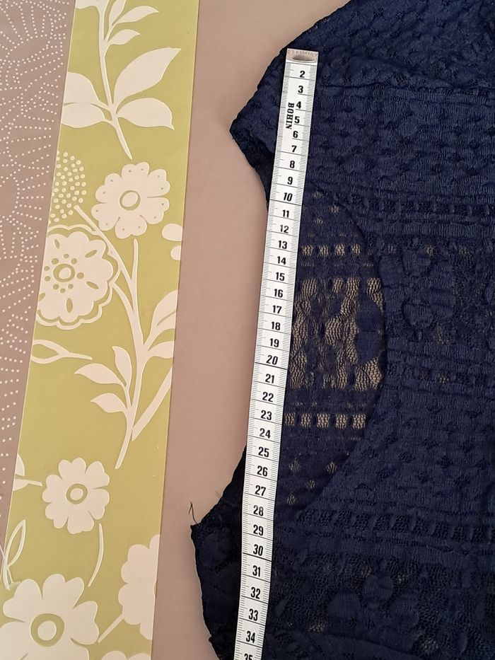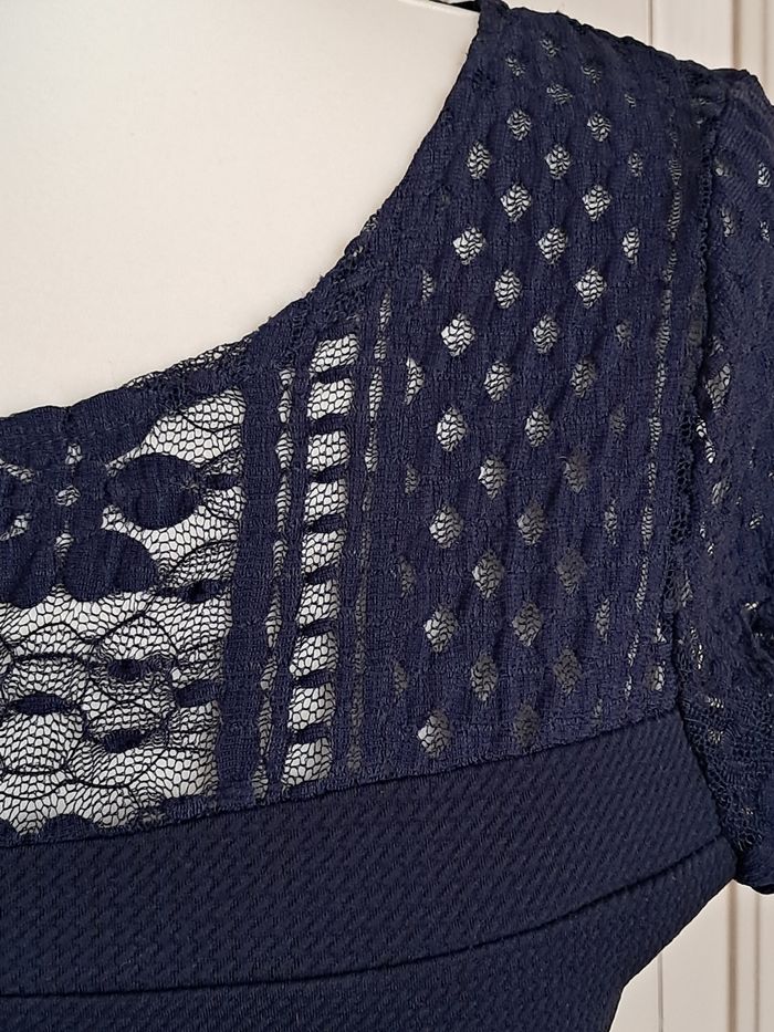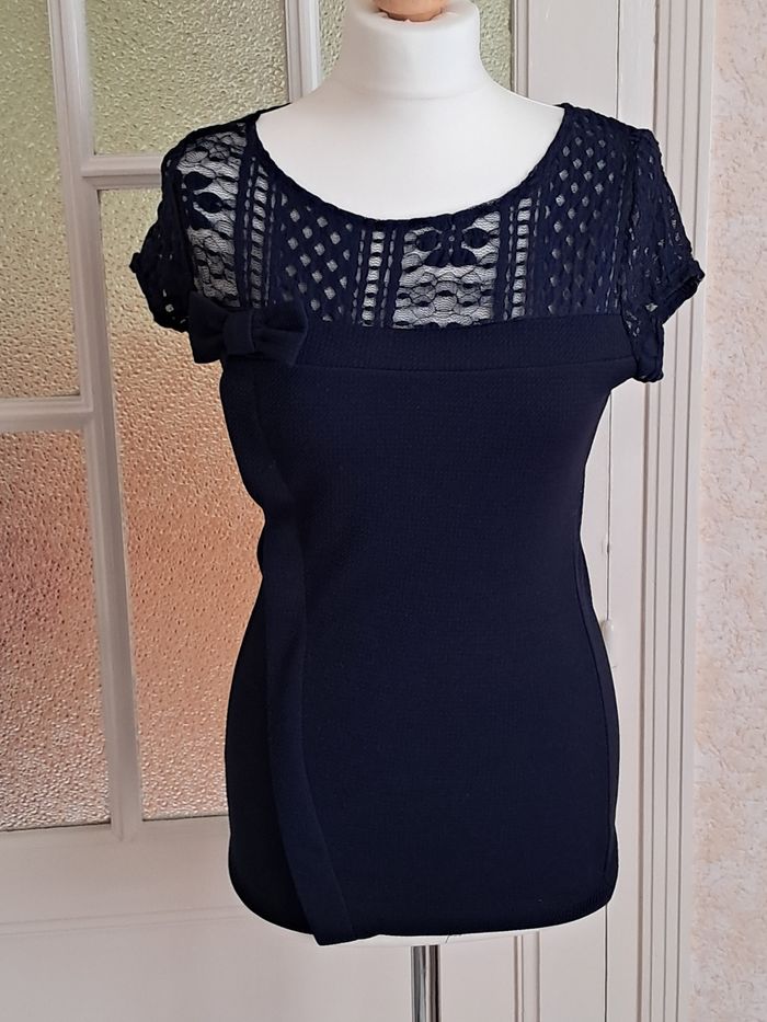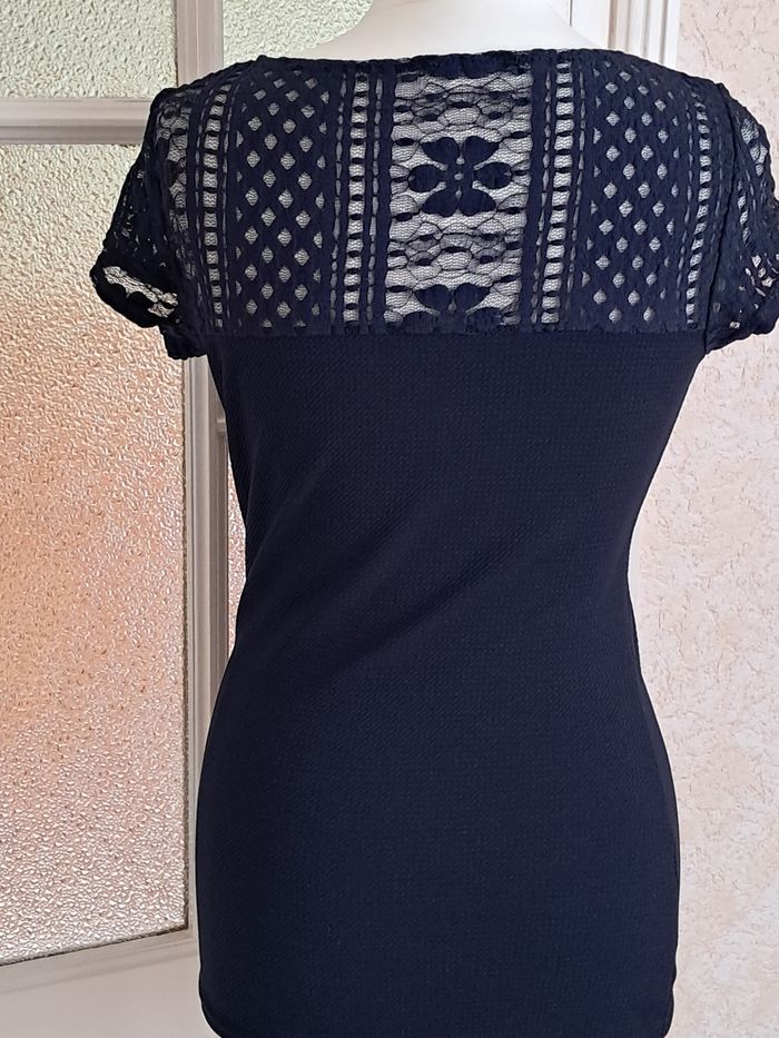 Haut MC bleu marine avec dentelle Voir photo pour les mensurations Plus étiquette de taille et matières
