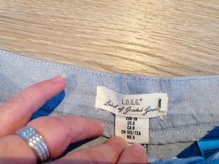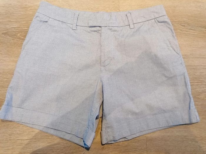 Bonjour, je vends ce short à fines rayures bleue et blanches de la marque LOGG taille 38 en parfait état. Lavé maison non fumeur.