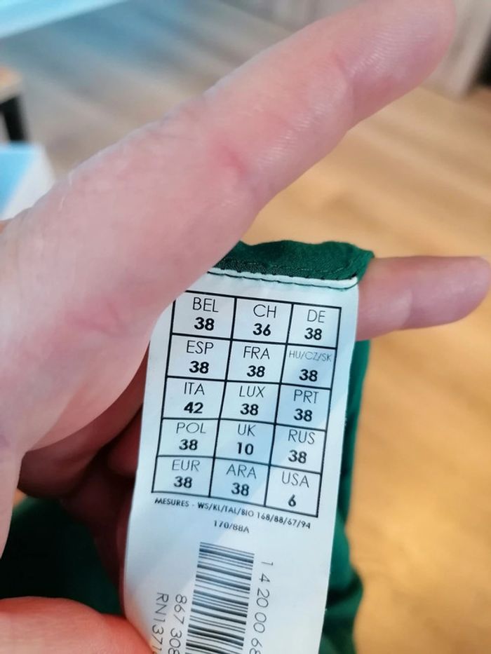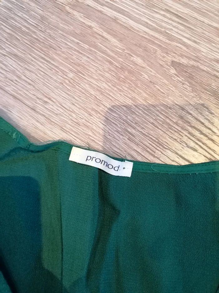 Bonjour, je vends cette robe dans manches verte de la marque Promod taille 38 en parfait état. Lavé maison non fumeur.