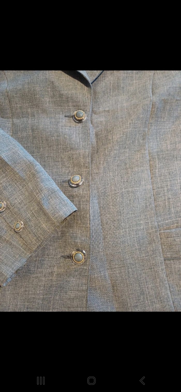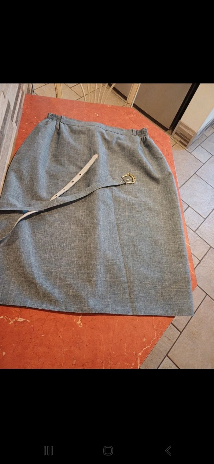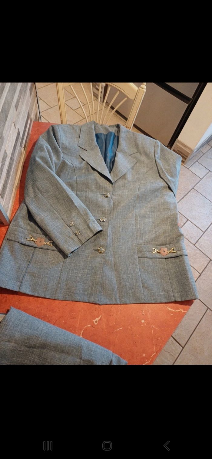 Tailleur composé d une jupe de longueur 70 cm environ, boutonnée à l arrière et fermeture éclair. Fendue sur le bas. Ceinture assortie ainsi qu une veste boutonnée à l avant avec petite épaulettes. Ensemble neuf. En parfait état