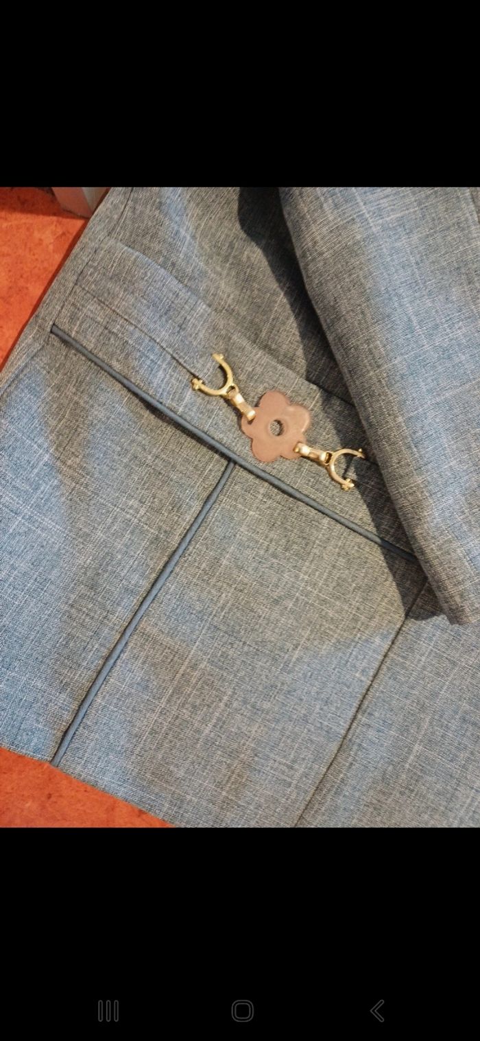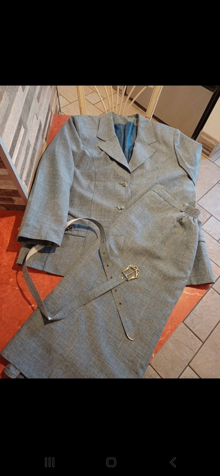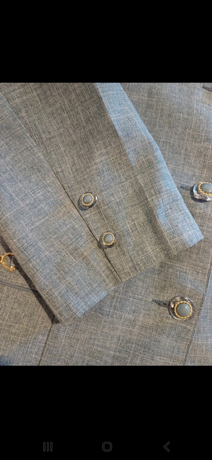 Tailleur composé d une jupe de longueur 70 cm environ, boutonnée à l arrière et fermeture éclair. Fendue sur le bas. Ceinture assortie ainsi qu une veste boutonnée à l avant avec petite épaulettes. Ensemble neuf. En parfait état